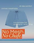 - Unlined (no mesh) for chafe-free, breathable, all-day comfort