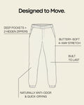 Our Boundless collection represents the intersection of performance, sustainability, and versatility. These joggers are built for the boundless lifestyle—ready for spontaneous city adventures, weekend countryside escapes, intense workouts, travel days, or casual hangouts. The ultra-light fabric with internal drawstring and ankle cuffs that stay in place ensures all-day comfort wherever your journey takes you.