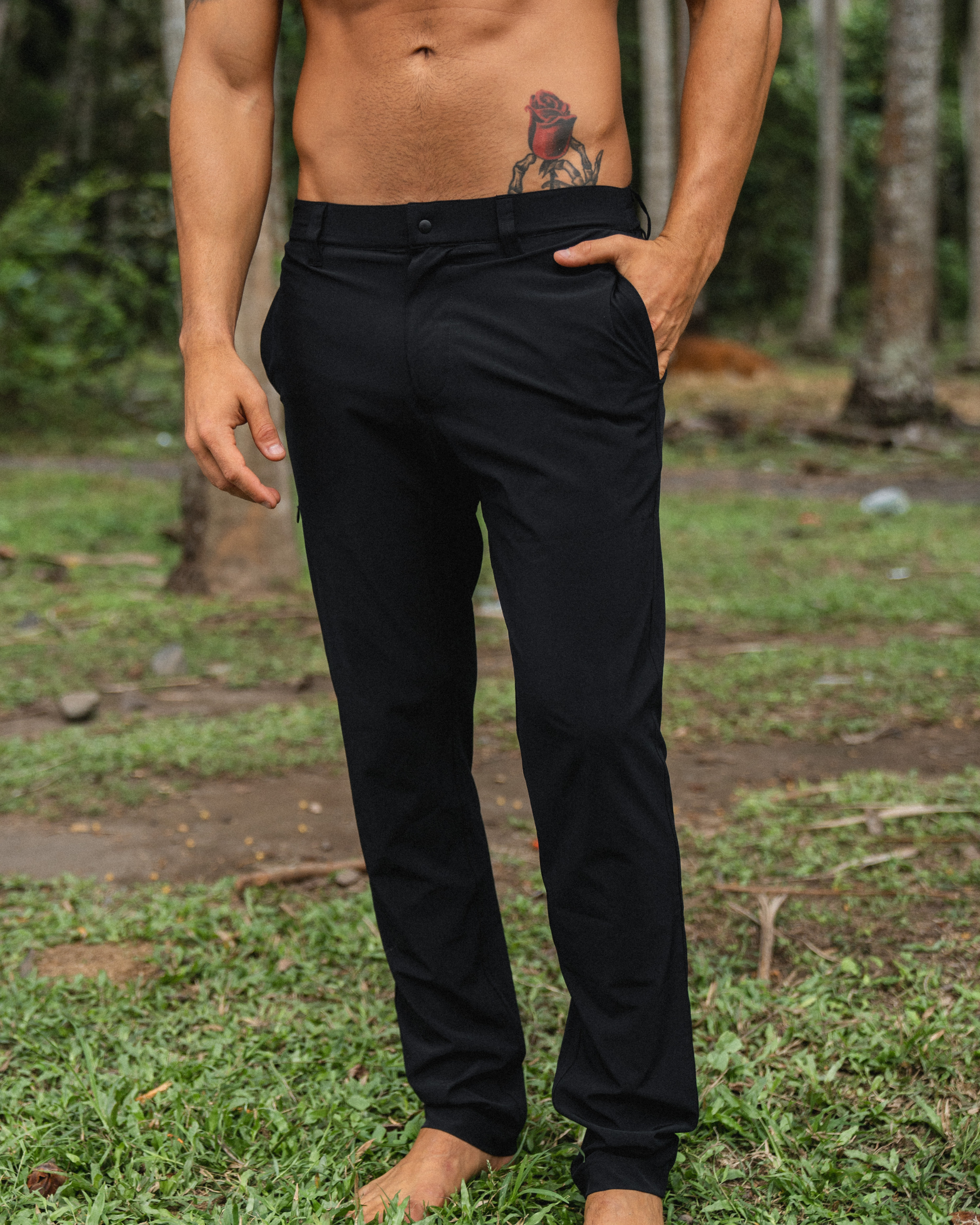 Meet your go-to pants for every adventure, whether you're exploring the city streets or venturing into the countryside. Our Black Boundless Pants combine buttery-soft, ultra-light comfort with a tailored chino look—perfect for work, travel, golf & life on-the-move. Engineered with upcycled coconuts for jogger-level comfort with professional style.