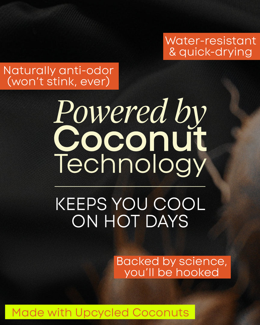 • Made from our signature lightweight blend: 38% upcycled coconuts, 50% ocean-bound plastic, 12% spandex (Same breathable fabric as our best-selling Boundless Shorts)