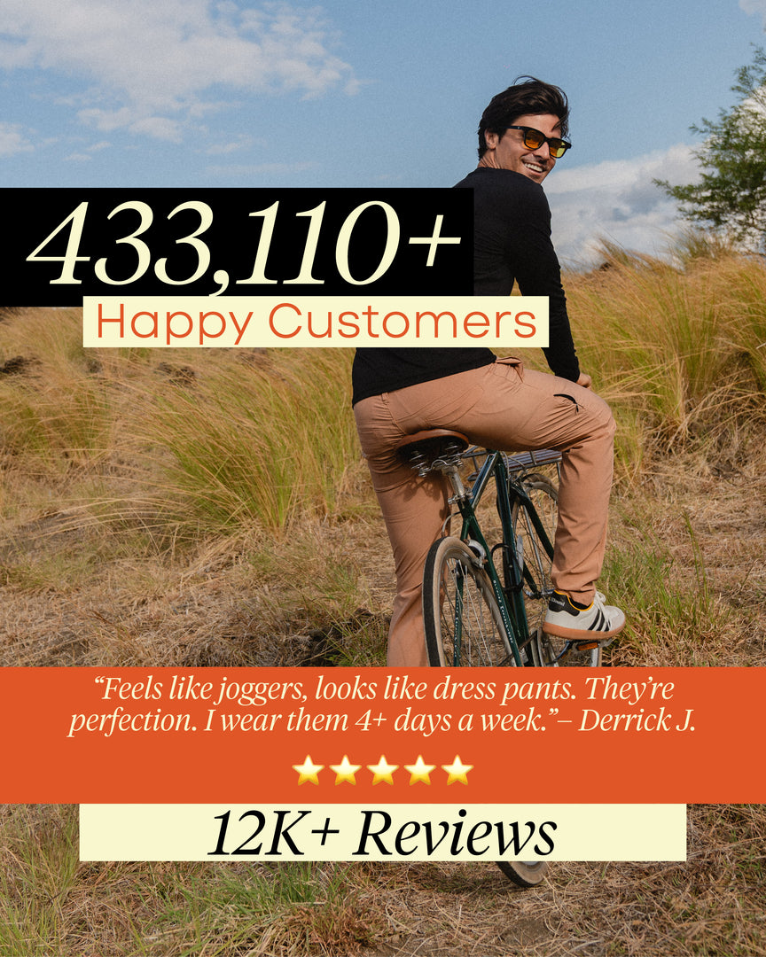 Looks like chinos, feels like joggers—anti-odor, ultra-light, won’t wrinkle, ride up, or lose shape after 100+ washes.