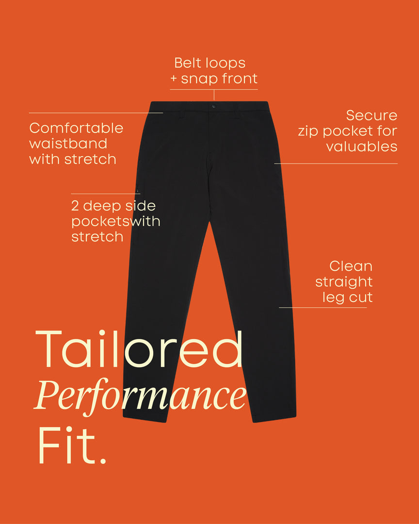 Looks like chinos, feels like joggers—anti-odor, ultra-light, won’t wrinkle, ride up, or lose shape after 100+ washes.