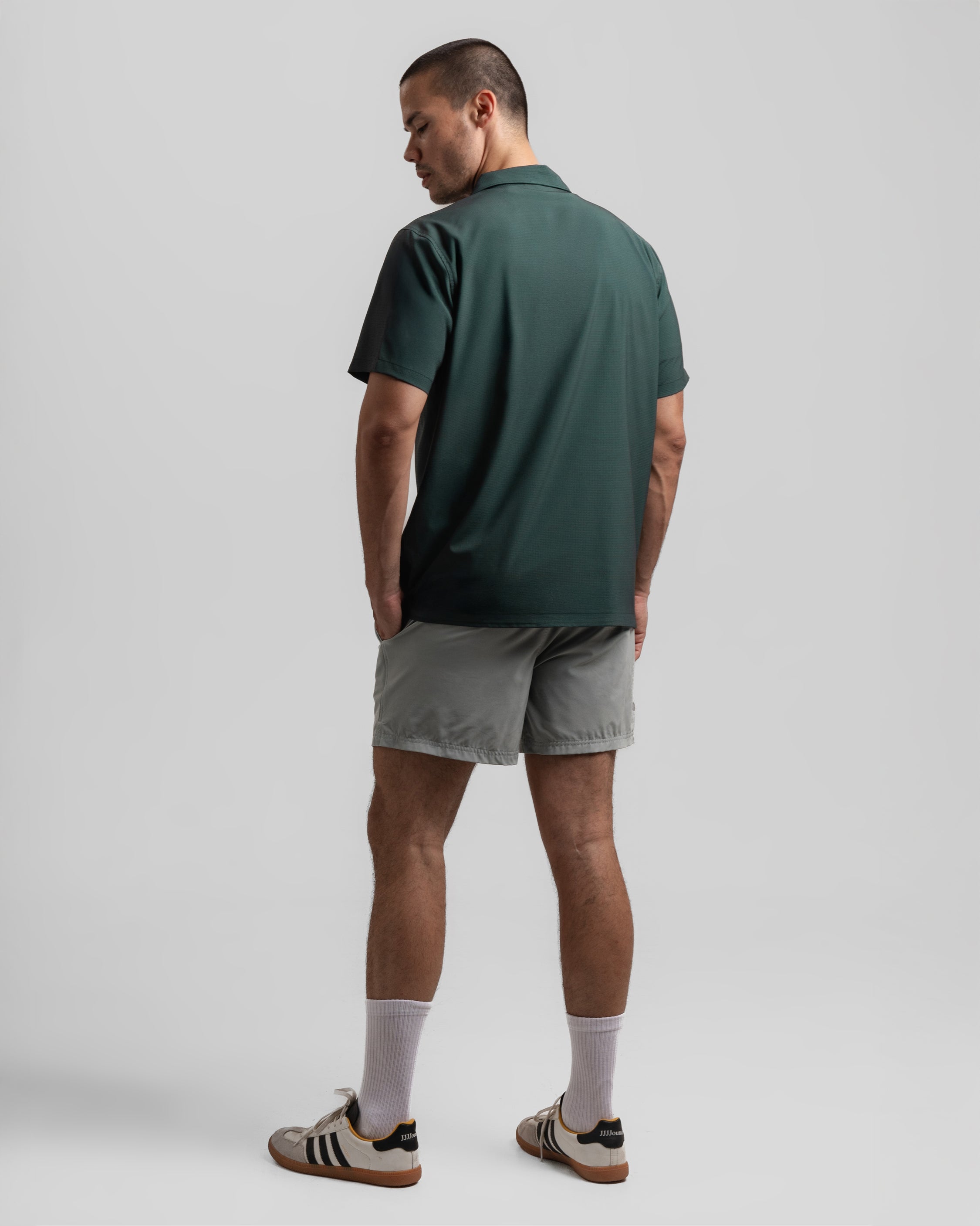 It’s made with our technical fabric blend that dries quickly and breathes well, so you’re not thinking about what you’re wearing, you’re thinking about what you’re doing. The camp collar and straight hem give it a timeless, every‑place feel.