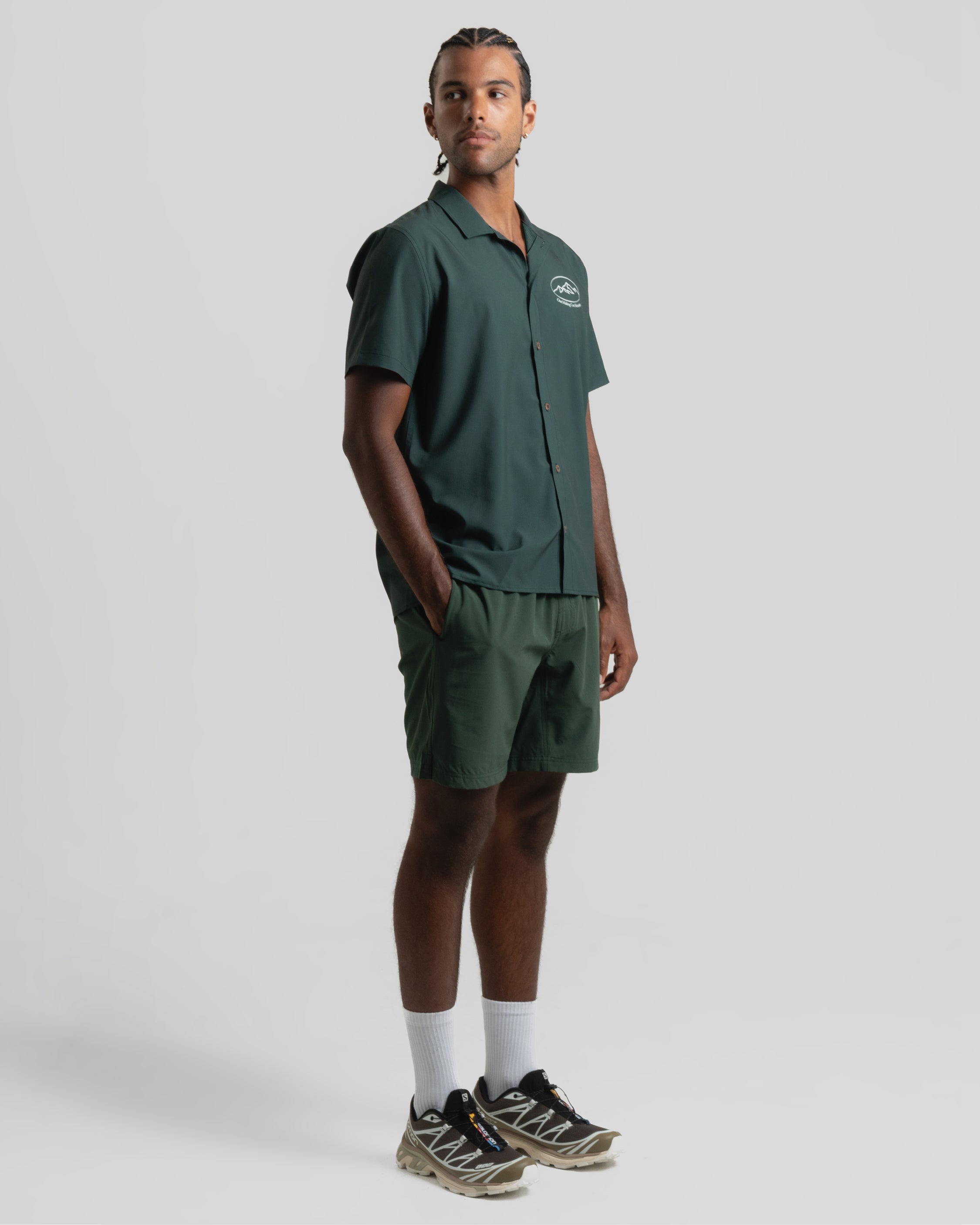 There's an old adage that says "if you look good, you feel good". Challenge accepted. The Slow Livin' Button Up is our technical camp collar shirt, tailored to both perform and look good at the highest level. Its main benefit lies in the breathable microperforated ripstop fabric that stretches and maintains its durability. Designed with a relaxed camp collar and straight bottom hem, it dumps heat and keeps you cooler than cool.